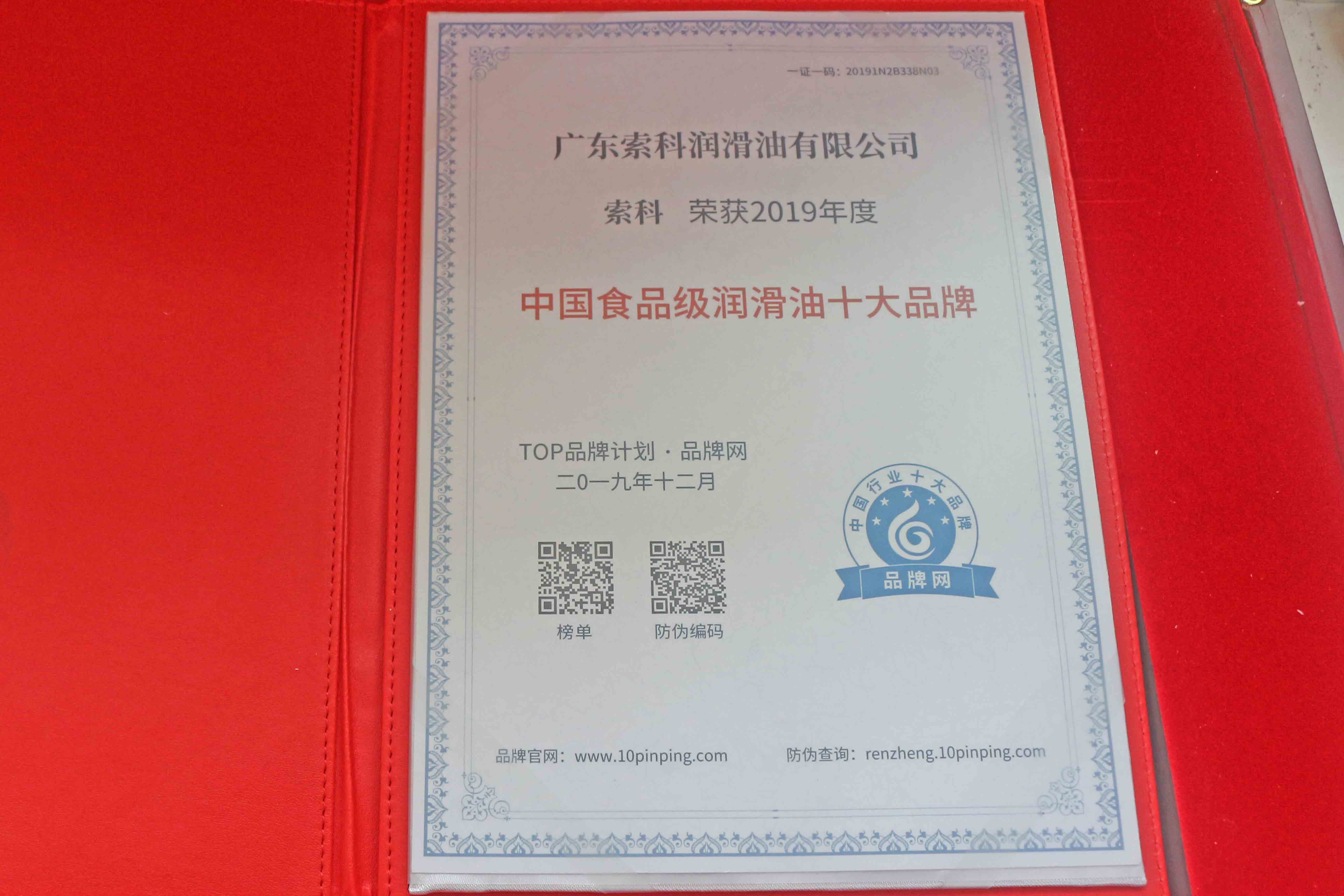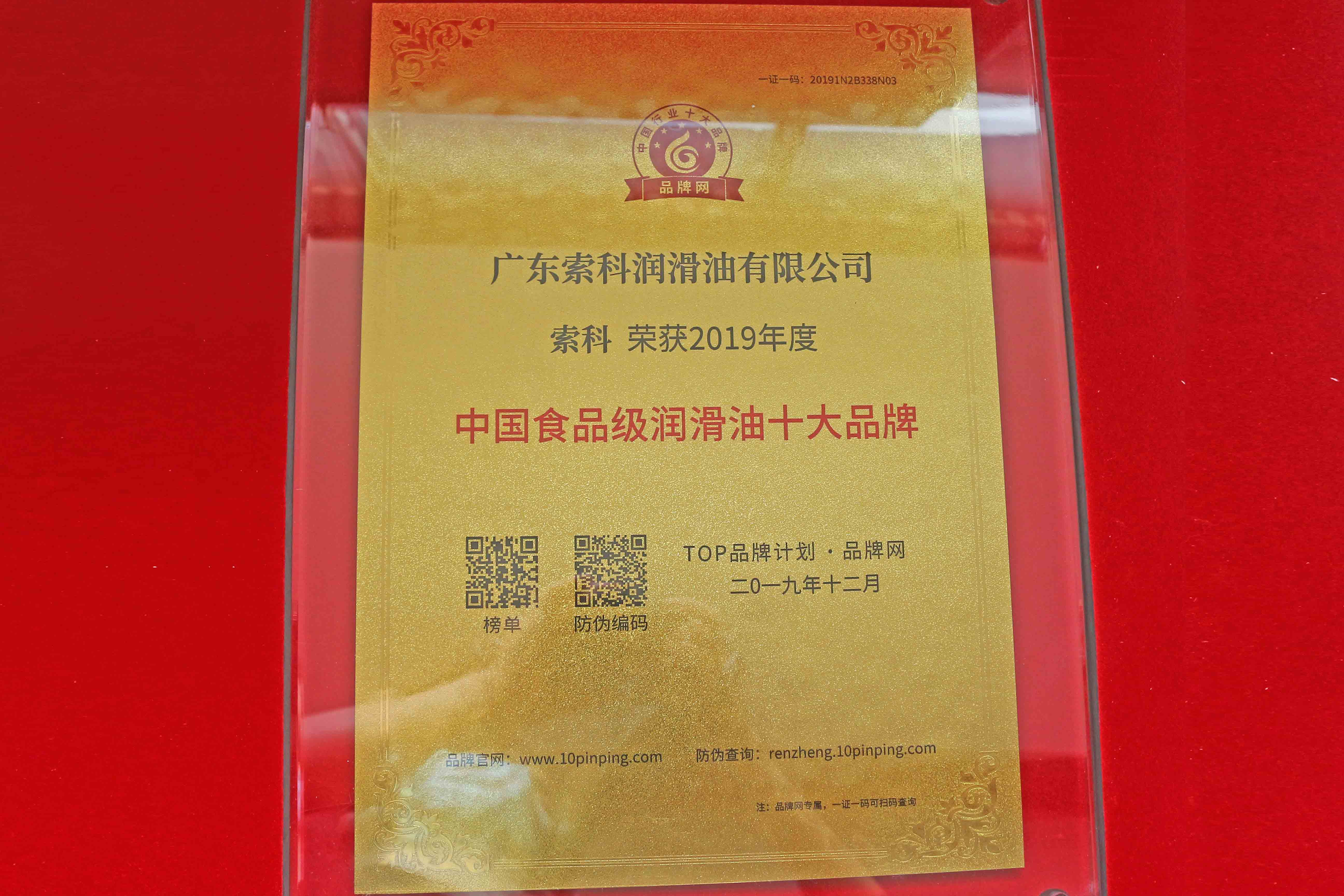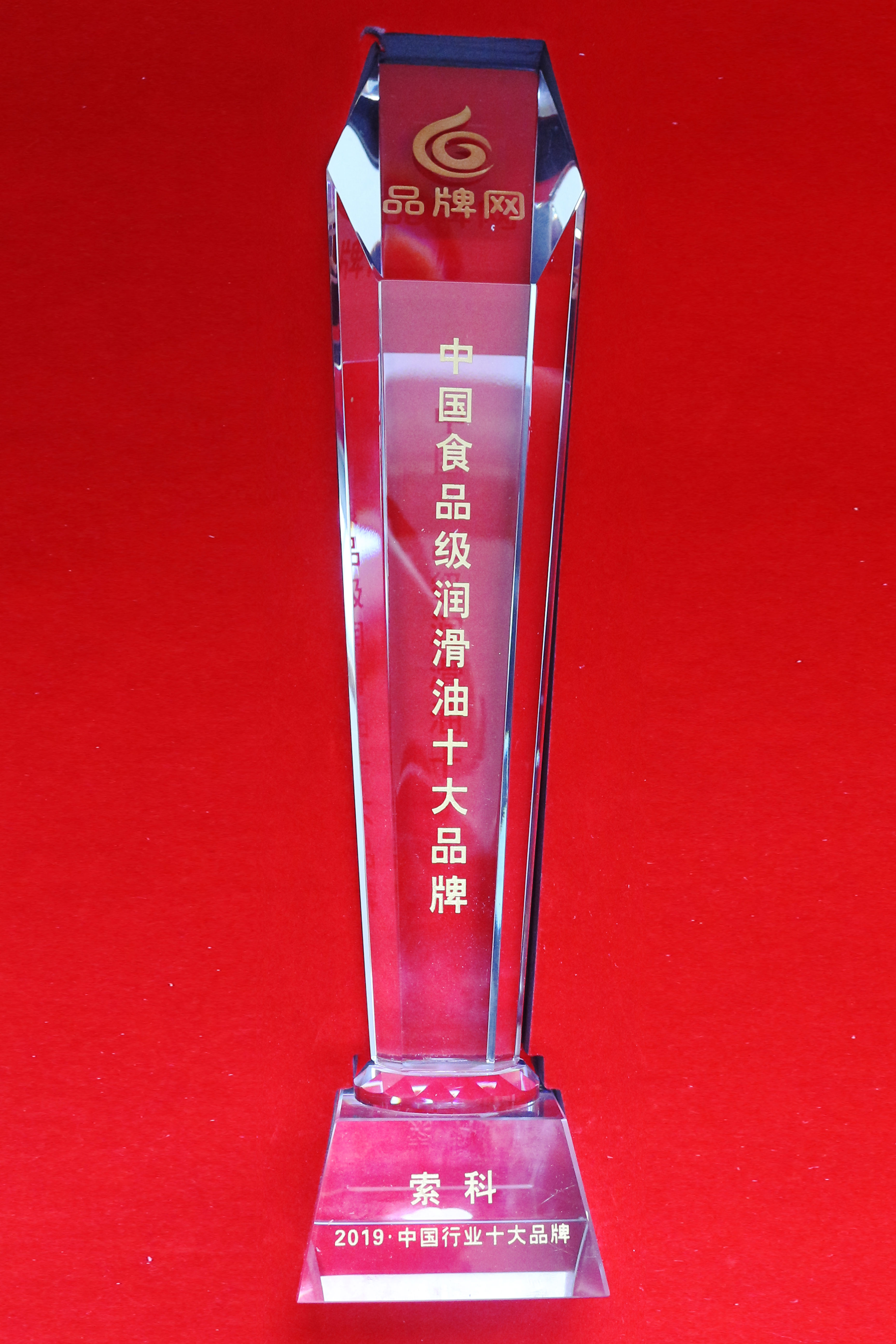 索科榮獲“中國食品級潤滑油行業(yè)”十大品牌榮譽(yù)
